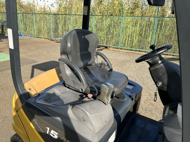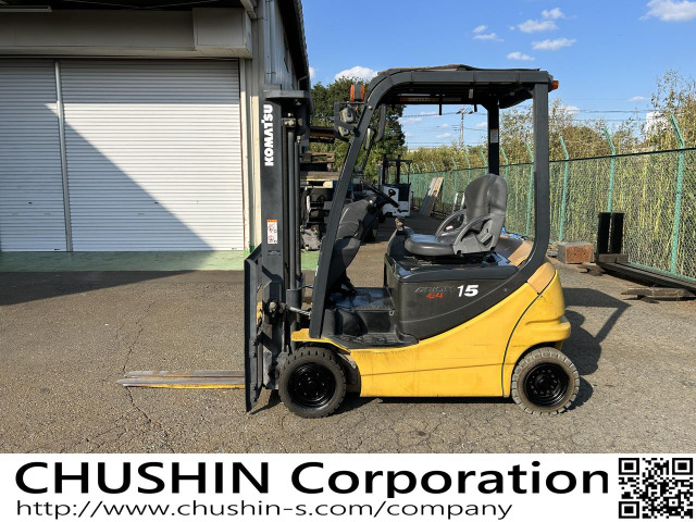 FB15-12 中古フォークリフト 1.5t の商品ページです。コマツ製の電動フォークリフトで、屋内倉庫や施設内での荷役作業に適した扱いやすい1.5トンクラスのモデルです。電動式のため排ガスが発生せず、静音性にも優れているため、食品関連倉庫や製造ラインなど、クリーンな環境を求められる現場でも使用できます。